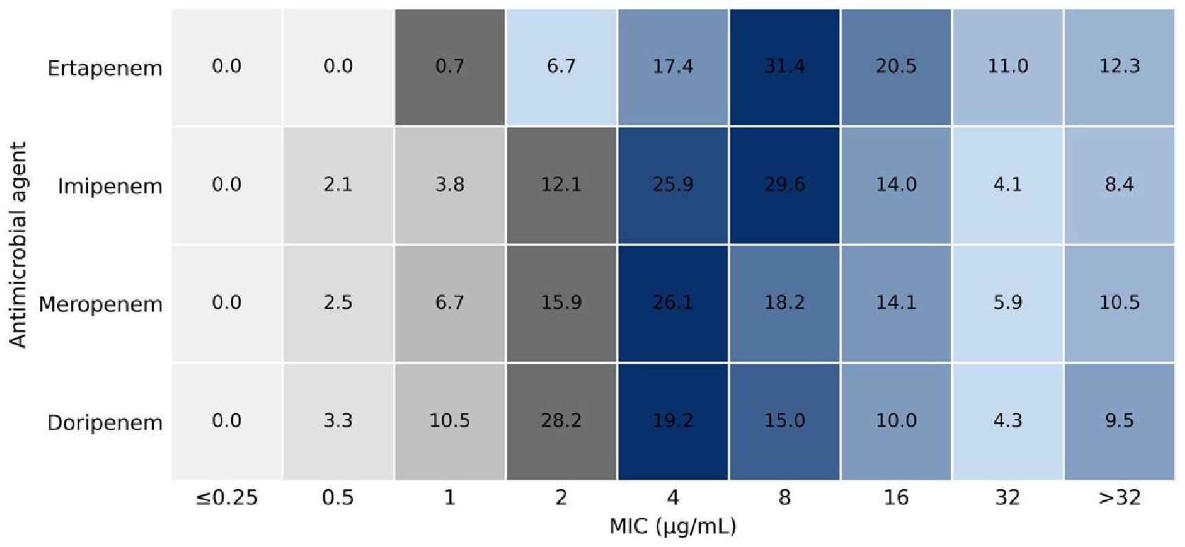 - Background: Carbapenem-resistant Enterobacterales(CRE) have emerged as a majorglobal health concern because of limited therapeutic options and high mortality in bloodstream infections.Regional epidemiologic data on bloodstream CRE infections are essential for guidinginfection-control strategies and antimicrobial stewardship. Methods: A total of 609 non-duplicate CRE isolates recovered from blood cultures at healthcare institutions in Busan, South Korea, between 2018 and 2024 were analyzed. Species identification was performed using the Vitek 2 Compact system(bioMérieux, France). Antimicrobial susceptibility testing for four carbapenems was determined by broth microdilution, and ten carbapenemase genes were detected by PCR. Results: Klebsiella pneumoniae predominated (81.8%), followed by Escherichia coli (11.7%) and Enterobacter spp. (4.6%). Ertapenem resistance (MIC ≥ 2 µg/mL) was observed in 99.3% of isolates, and elevated MIC values (≥ 8 µg/mL) were frequently observed across all carbapenems. Carbapenemase-producing Enterobacterales (CPE) accounted for 98.2% of isolates. KPC-type carbapenemases were most frequent (88.2%), predominantly KPC-2 (84.9%), whereas NDM- and OXA-type carbapenemases were detected sporadically. Conclusion: KPC-2-producing K. pneumoniae remains the principal cause of CRE bloodstream infections in Busan. The presence of diverse carbapenemase genotypes across healthcare institutions indicates ongoing regional disseminationof resistance determinants, underscoring the need for sustained molecular surveillance and coordinated infection-control efforts. - COLLAPSE